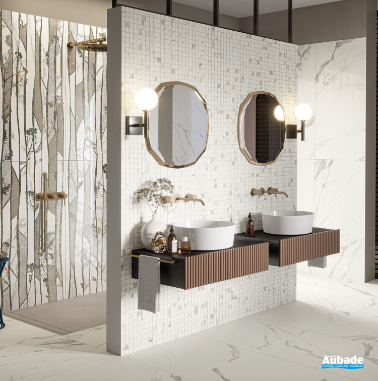 Découvrez la collection de carreaux SONIA de Sélection Aubade, une somptueuse représentation des nobles marbres italiens. Cette collection unique intègre quatre des plus célèbres marbres italiens : Calacatta, Statuario, Arabescato et Dolomiti. Grâce à une technologie d'impression numérique de très haute définition, nous recréons le veinage, la pureté et la blancheur de ces marbres d'origine de manière spectaculaire.