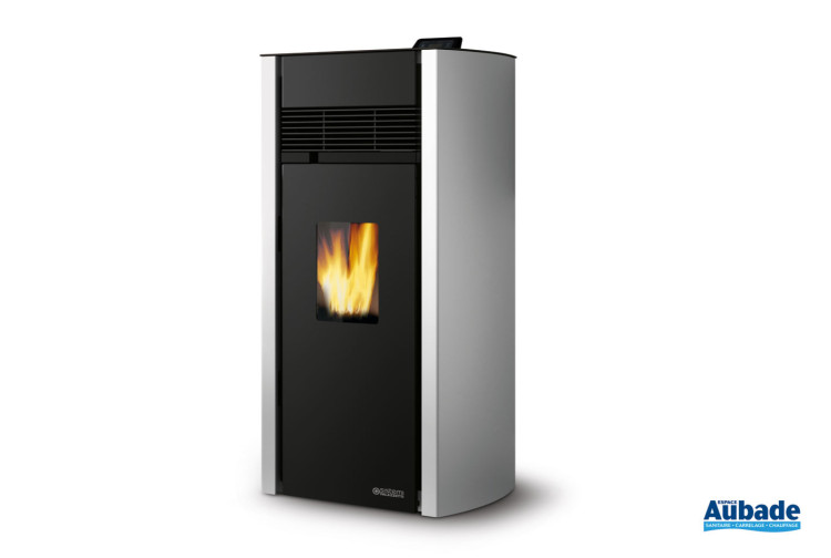 La structure en acier est de forme arrondie avec un revêtement en métal, vous laissant le choix entre trois couleurs : blanc, noir et rouge. Le poêle est équipé d’une porte en vitrocéramique (800°C) ainsi que d’un système autonettoyant. Il contient aussi un grand tiroir à cendres. La charge des pellets se fait en écluse, ce qui implique l’utilisation de doses très précises de granulés pour optimiser la consommation.