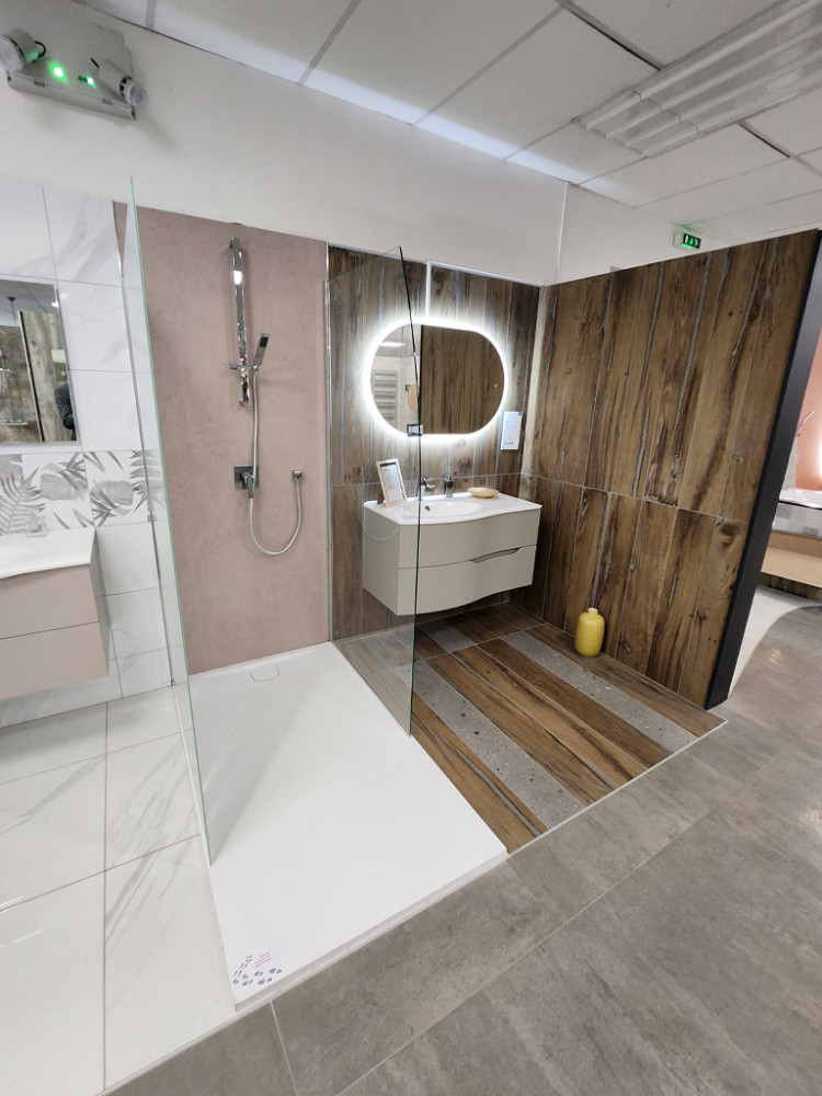 Plongez dans un espace entièrement consacré à l’univers de la salle de bains, du carrelage, du chauffage et des énergies renouvelables. Vous y trouverez des collections variées, où design et innovation se conjuguent pour donner vie à vos projets.