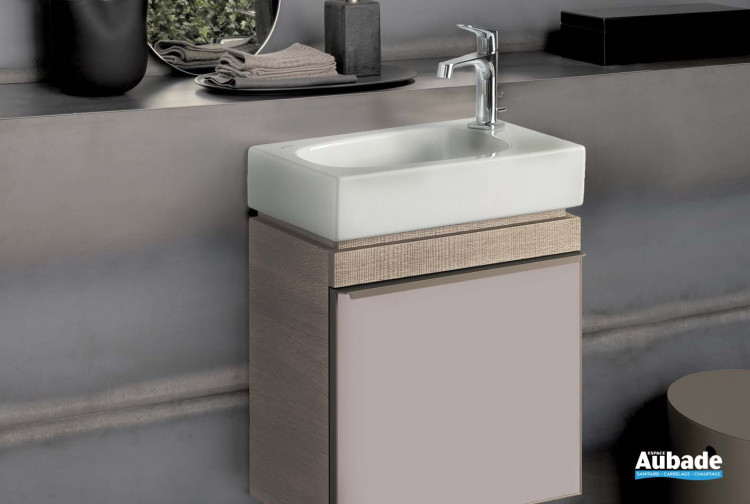 Meuble CITTERIO disponible en deux finitions : Gris Brun cérusé, façade verre noir et en finition Beige naturel cérusé, façade verre taupe.
