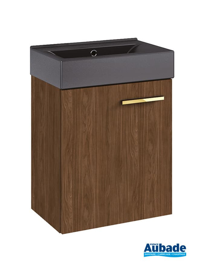 Optez pour le total look monochrome avec le meuble assorti au plan vasque et une personnalisation de la poignée en fonction de la finition de votre robinetterie !