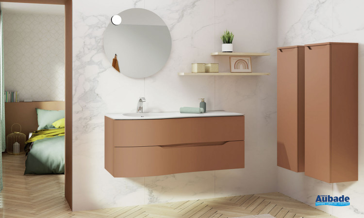 - Meubles vasque 2 tiroirs Meuble vasque galbé à la ligne épurée et à la courbe subtile, Eloge présente une parfaite harmonie. Laissez-vous séduire par son généreux plan vasque Céramyl® (composite sanitaire recouvert d’un gel coat haute densité, ultra-résistant) et sa confortable plage de pose, disponible en version droite ou gauche, dans 5 finitions de laques extra-mates, Blanc, Terracotta, Grège, Toundra et Noir, sans styrène ni formaldéhyde.