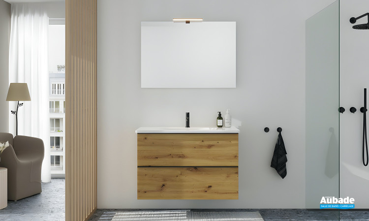 Composez votre ensemble avec un meuble sous-vasque de largeur 60, 80, 100 ou 120 cm et un plan vasque de même dimensions. Associez-y ensuite un miroir et une applique LED.