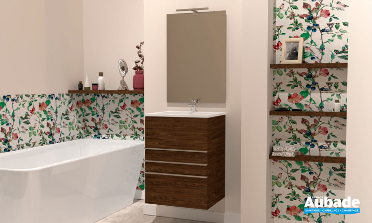Associez à votre meuble vasque, de faible largeur avec ses 56 cm et disponible en 3 coloris, le miroir équipé d’une applique LED afin d’obtenir un ensemble parfait pour les espaces réduits !