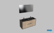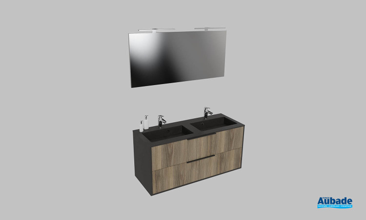 Cet ensemble unique de Delpha se compose d’une armoire de toilette avec 2 appliques LED Noir mat pour une mise en beauté réussie, d’un plan double vasque effet pierre très design et d’un meuble sous-vasque avec 2 coulissants offrant un grand espace de rangement.